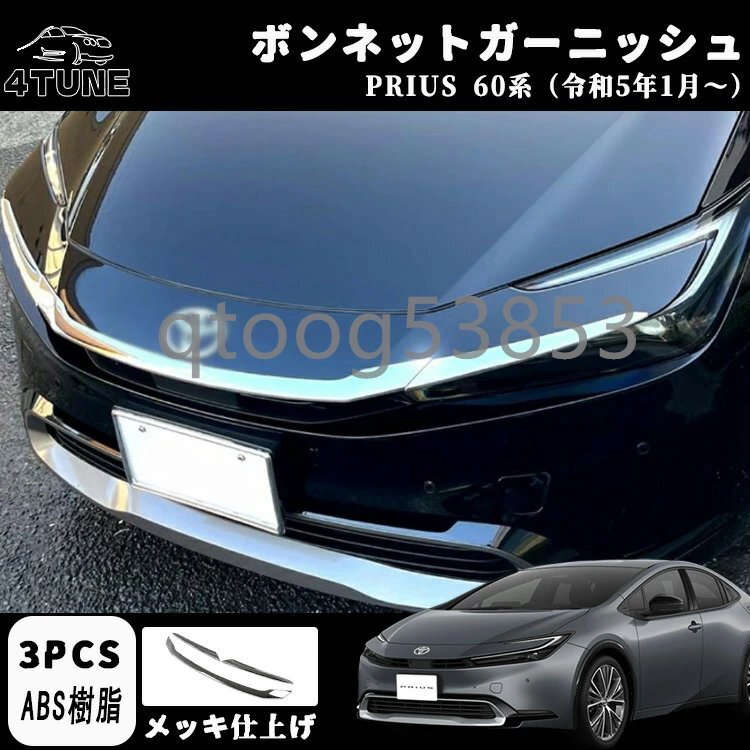 - プリウス 60系 パーツ エンジンフード ボンネット ガーニッシュ 外装 アクセサリー ドレスアップ パーツ 3PC