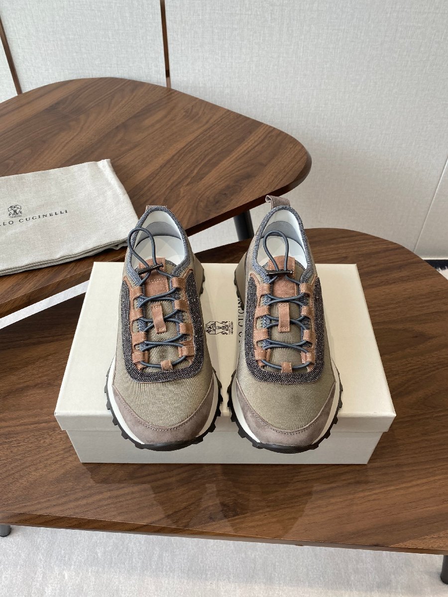 - 22.5cm ★【新品】★ブルネロクチネリ★ レディース スニーカー、スエードレザー、TPUソール、レースアップ、カジュアルシューズ