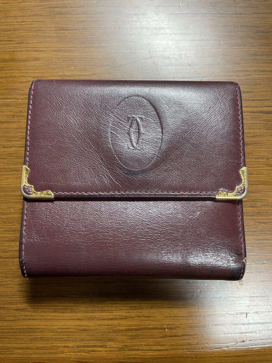 - 【中古・保管品 】財布 Cartier カルティエ マストライン がま口付き 二つ折り財布 ボルドーカラー レザー ビンテージ レザー 財布 マスト