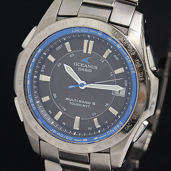 > 1円 稼働 カシオ オシアナス OCW-T100 電波ソーラー ブラック文字盤 メンズ腕時計 0528000 10ERT SMZ