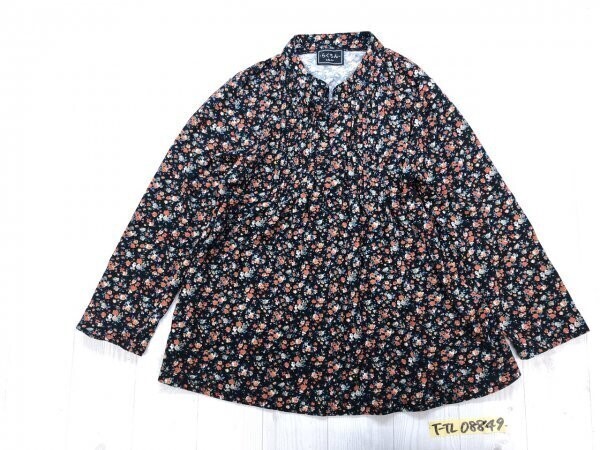 - らくちん CALOF レディース 小花総柄 ニット素材 カットソー プリーツ加工 ストレッチ M-L 黒オレンジ青