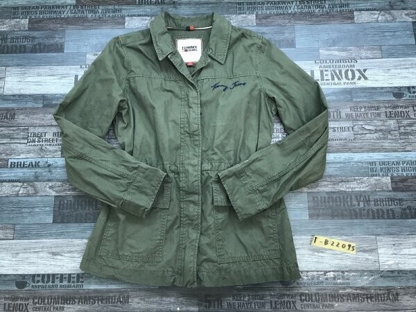 - TOMMY JEANS トミージーンズ レディース ロゴ刺繍 シャツジャケット S/P カーキ