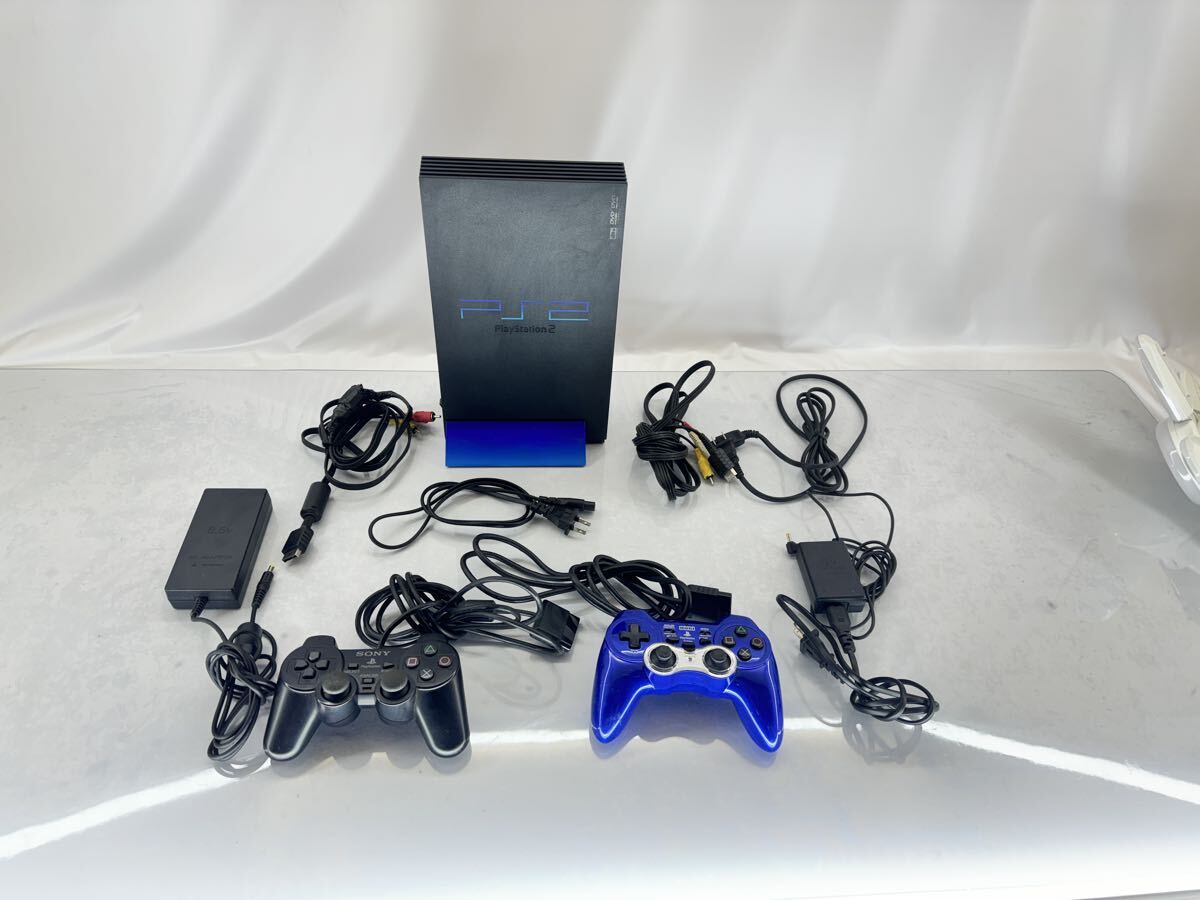> PS2 本体 PlayStation2 コントローラー2個付き 通電確認済 AVケーブル 電源アダプター 予備ケーブル 付き
