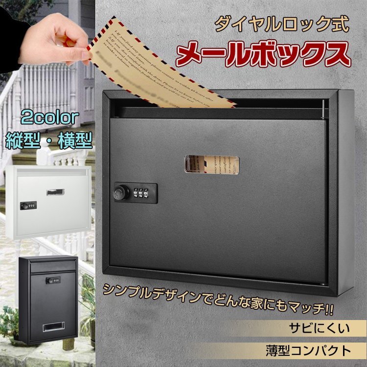 - 送料無料 郵便ポスト 壁掛け おしゃれ 安い 鍵付き 玄関 宅配ボックス 戸建 後付け メールボックス ダイヤルロック 新聞 横型 薄型 ny579-b