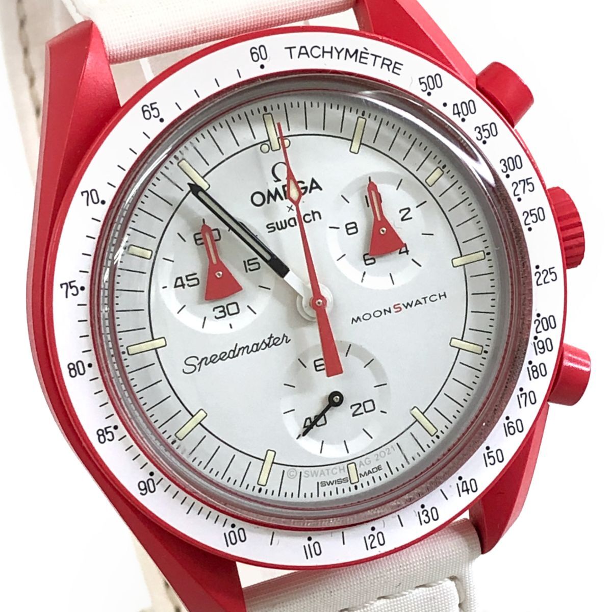 - Swatch × Omega ムーン スウォッチ × オメガ MISSION TO MARS マーズ SO33R100 バイオセラミック 腕時計 クオーツ クロノグラフ 動作OK