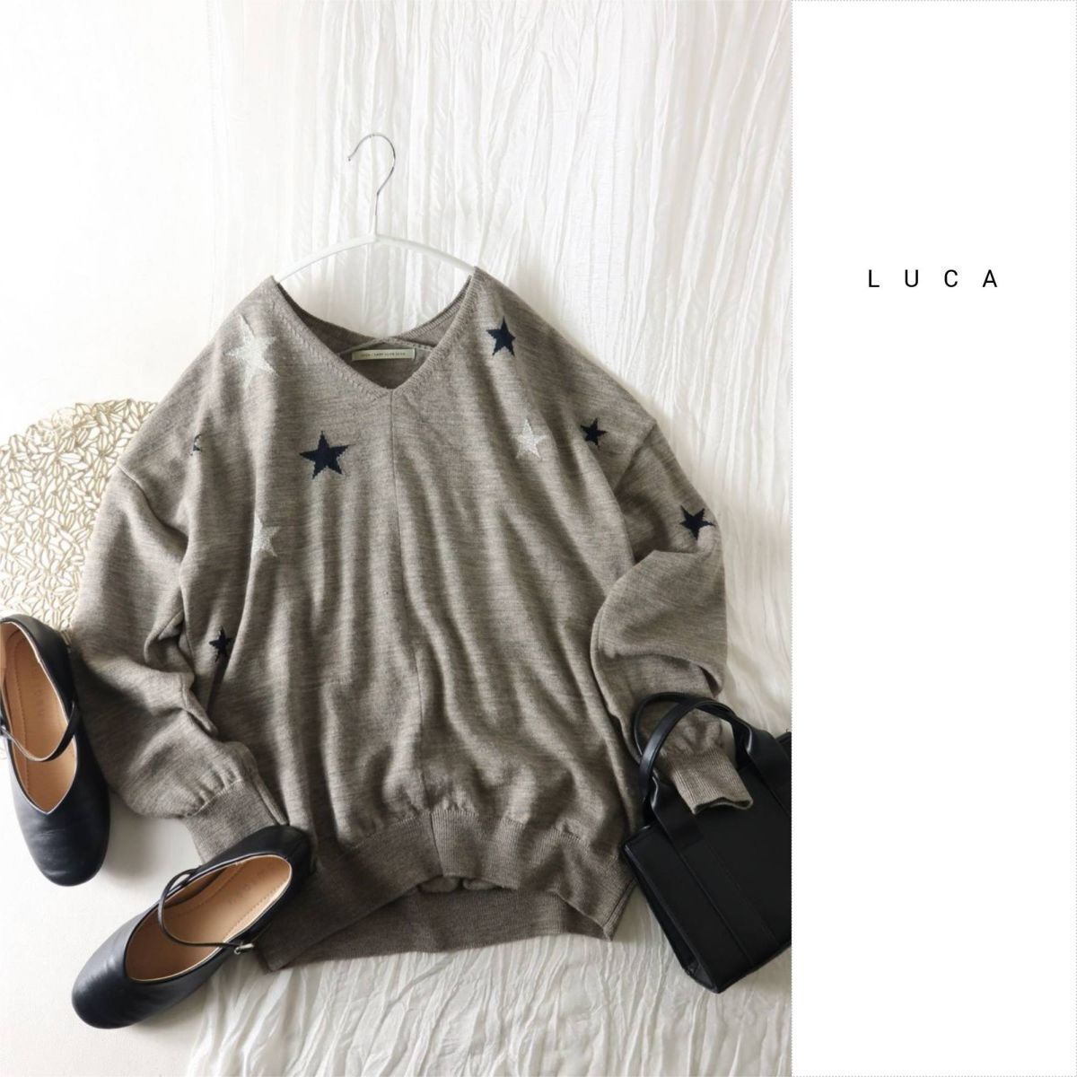 - 1.4万☆ルカ LUCA☆洗える 12Gウール100% 星ニットプルオーバー☆M-B 5782