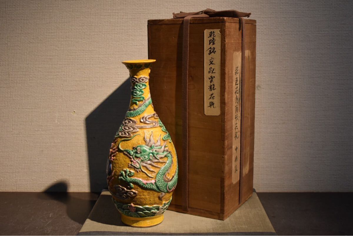 - 【GE】Y1069【コレクター所蔵品】時代 黄南京花瓶/中国古玩 中国美術 花入 骨董品 時代品 美術品 古美術品 ba