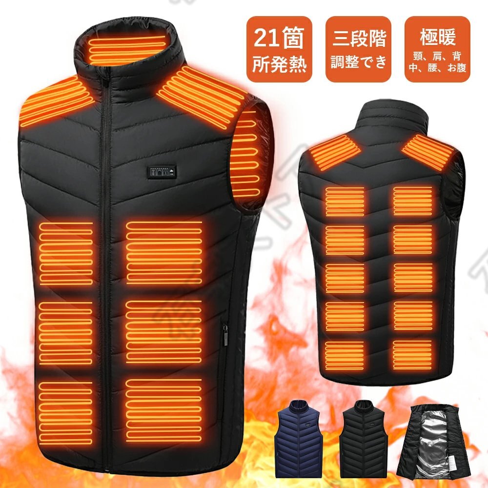 - ★電熱ベスト 21箇所発熱 20000mAh モバイルバッテリー付き ヒーターベスト 作業着 インナー 3段温度調整 防寒着 USB給電 Mサイズ shw304.1