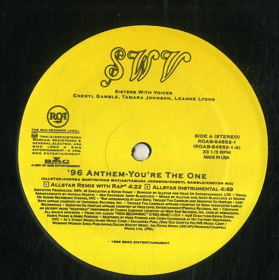 A00473284/12インチ/SWV「96 Anthem - Youre The One (Allstar Remix With Rap)」