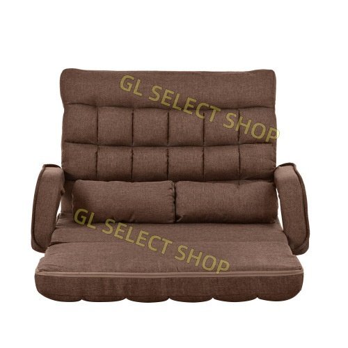 - 【ブラウン】 座椅子 4WAY 連動肘つき リクライニングソファ 折りたたみ 2人掛けソファー ハイバック 低い椅子 ローソファー コンパクト