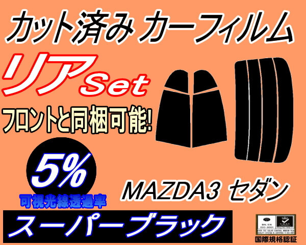 > カーフィルム スーパーブラック カット済み リアセット MAZDA3 セダン (s) スモーク ガラスフィルム セット BP5P BP8P BPEP BPFP マツダ