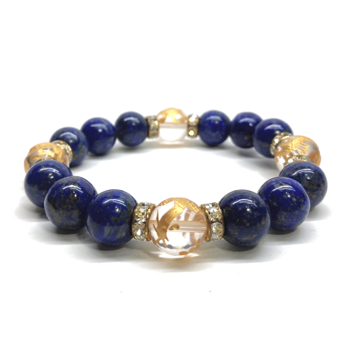 > 四神獣金彫水晶×ラピスラズリ 12mm パワーストーン ブレスレット天然石 青龍 白虎 玄武 朱雀 運気上昇 金運 健康運 お守り 四神相応 G
