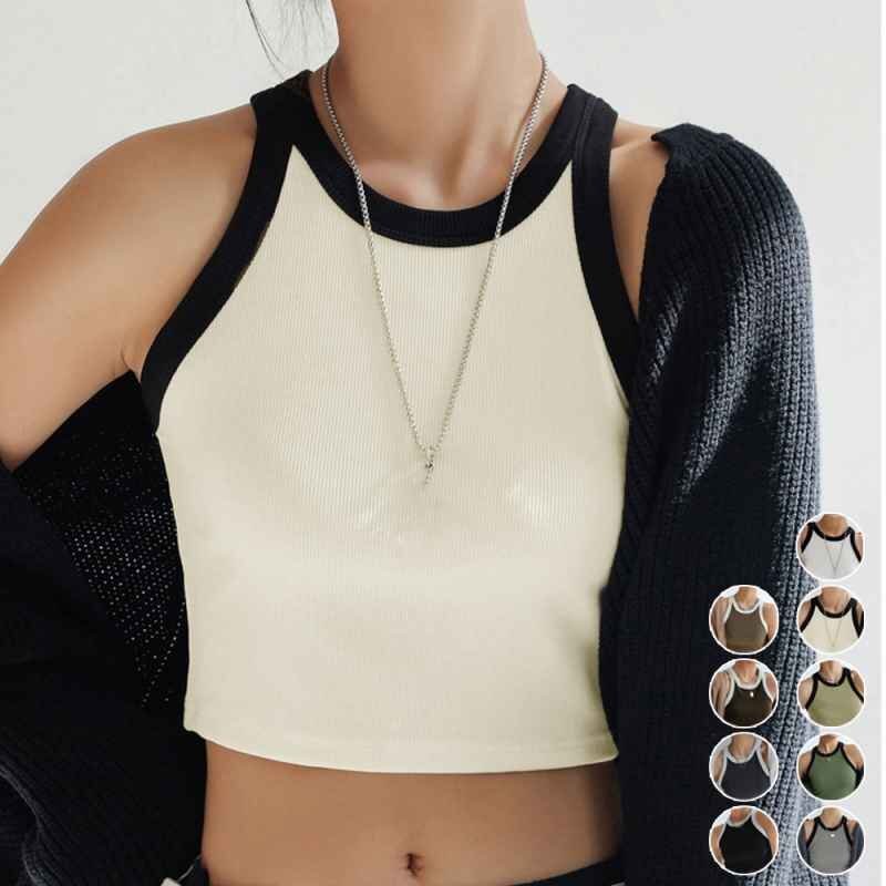 - タンクトップ レディース ショート丈 へそ出しキャミ インナートップス M ライトブラウン