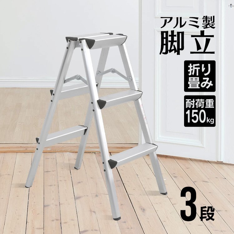 - 脚立 足場 アルミ 3段 折りたたみ 踏み台 洗車 昇降 耐荷重150kg おしゃれ スツール ステップ はしご 梯子 作業台 安全 掃除 収納 DIY