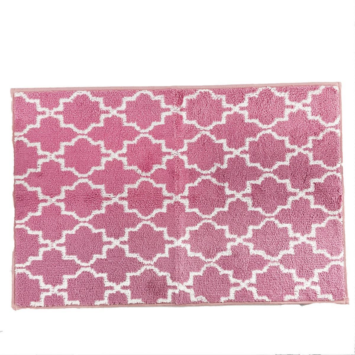 - バスマット マイクロファイバー素材 パイピング加工 60x90cm モロッコン柄 ピンク