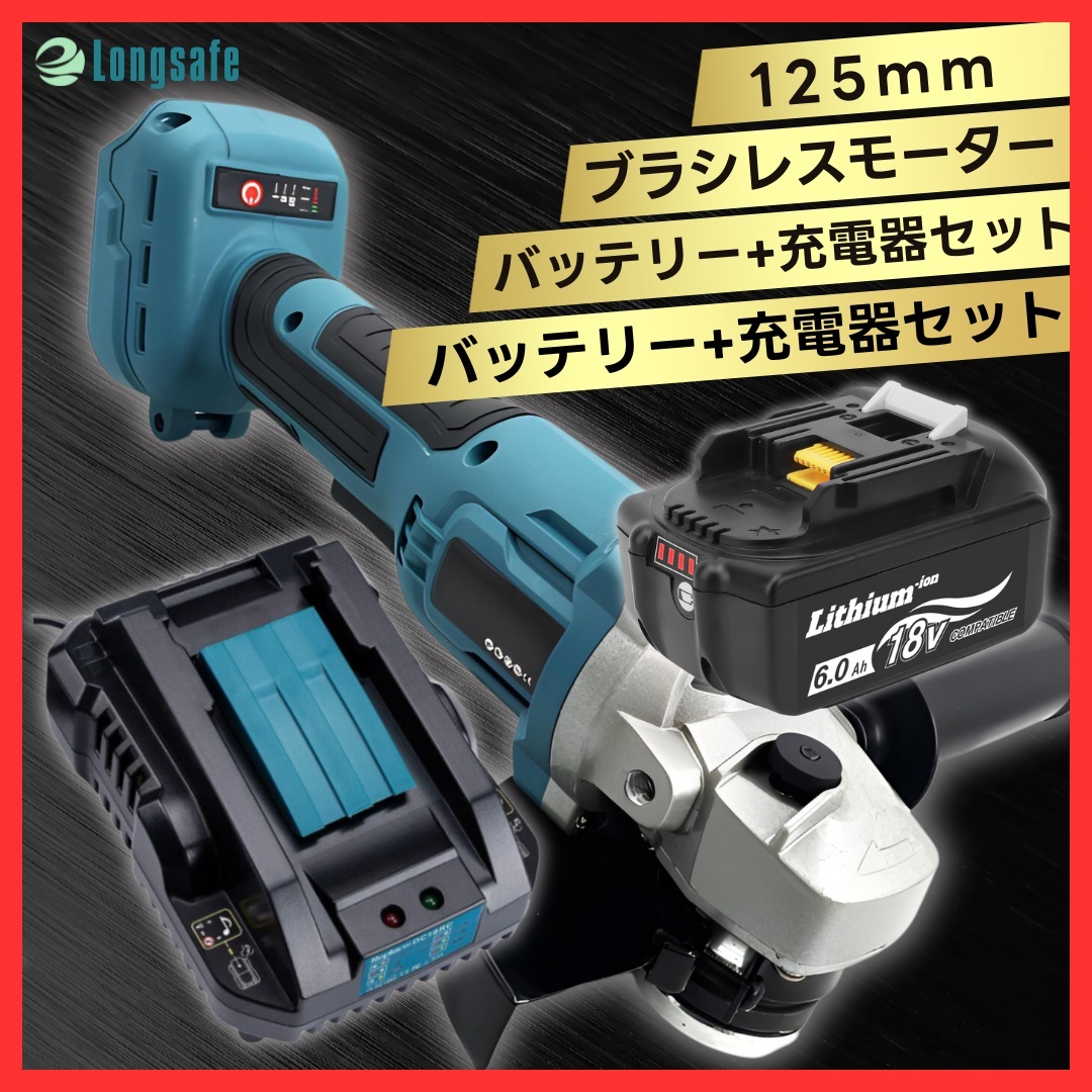 - (A) グラインダー125mm マキタ makita 互換 BL1860B+DC18RC ブラシレス ディスクグラインダー バッテリー 小型充電器 3点 セット