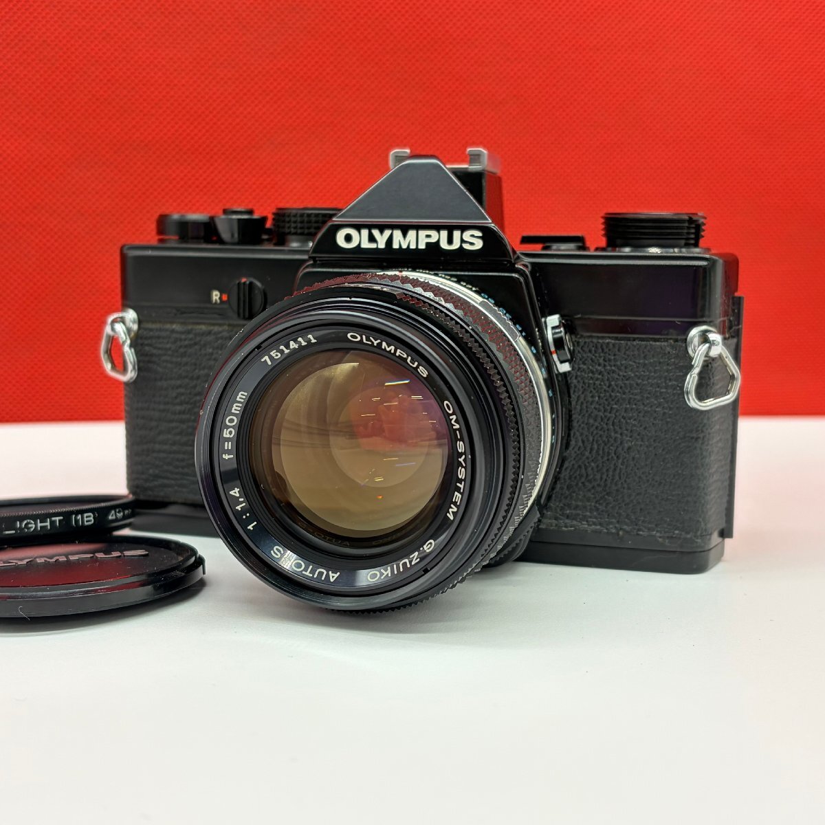 > +52 OLYMPUS OM-1 ブラック OM-SYSTEM G.ZUIKO AUTO-S F1.4 50mm フィルム一眼レフカメラ 動作品 1円スタート オリンパス