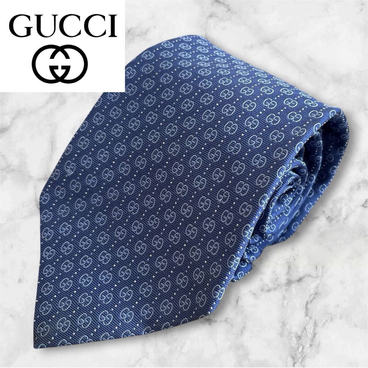 - グッチ GUCCI ネクタイ 総柄 GG柄 スーツ ネイビー ハイブランド ブランド イタリア製 シルク100