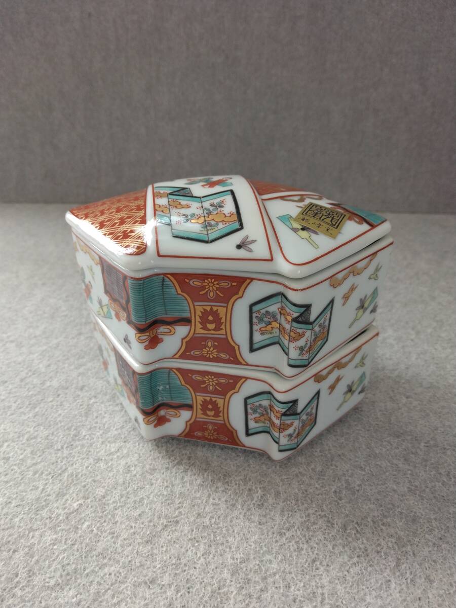 - 蓋物 三段重 帯結 雛絵 色絵松竹梅 茶入れ香入れ小物入れ 龍峰窯