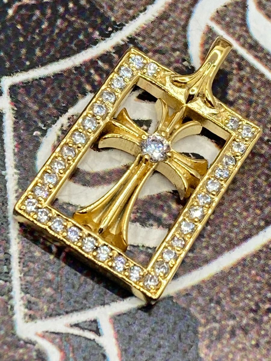 - †CHROME HEARTS†クロムハーツ†フレームド オープン ベビーファット チャーム ペンダント 22k 天然パヴェ