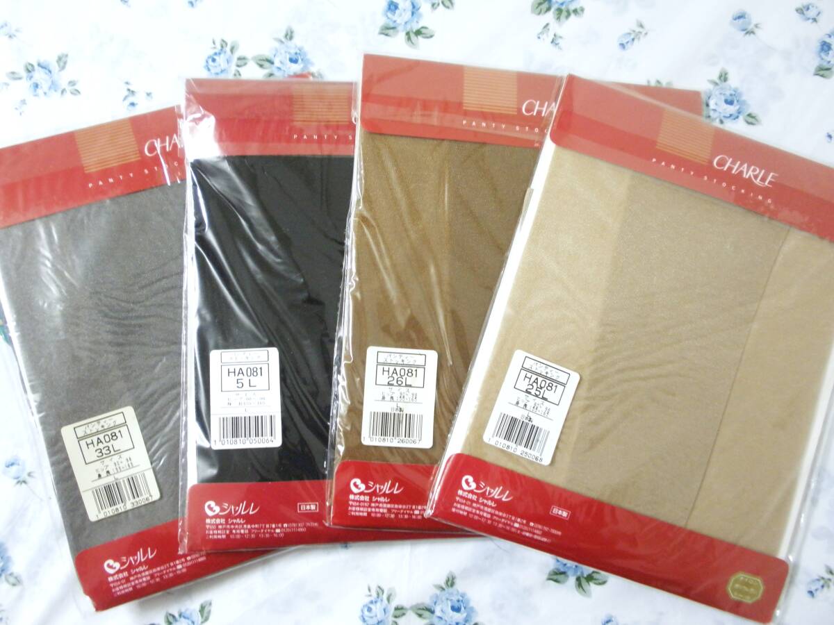 - 4足組 シャルレ L 光沢感 サポートタイプ HA081 丈夫なつやつやパンスト★シルキー ストッキング セット まとめて
