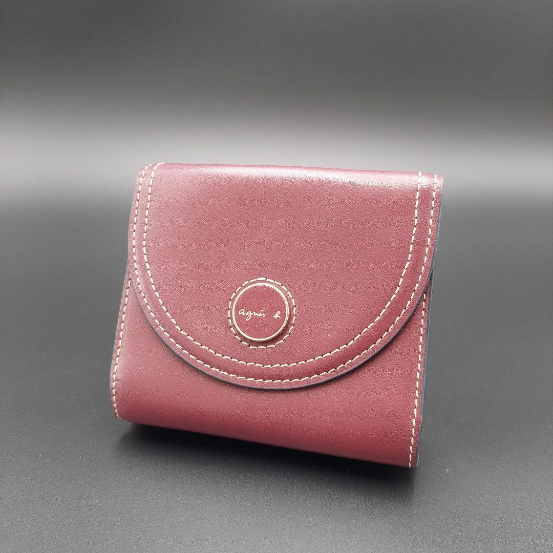 - 【大人気】agnes b. アニエスベー レザー 折財布 三つ折り財布 良品 ボルドー 大人気モデル 希少 カード6枚収納 エンブレムロゴ