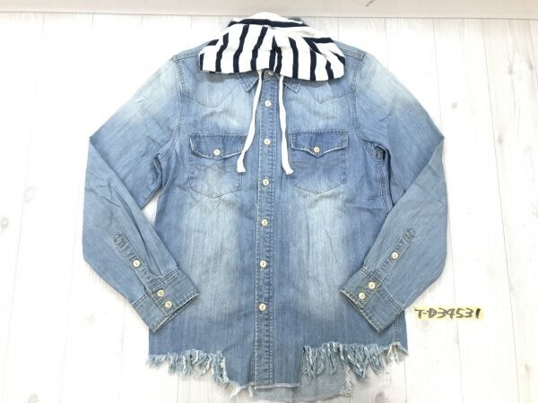 - Ungrid アングリッド レディース フード取り外し可 シャンブレー フリンジ シャツ F 青