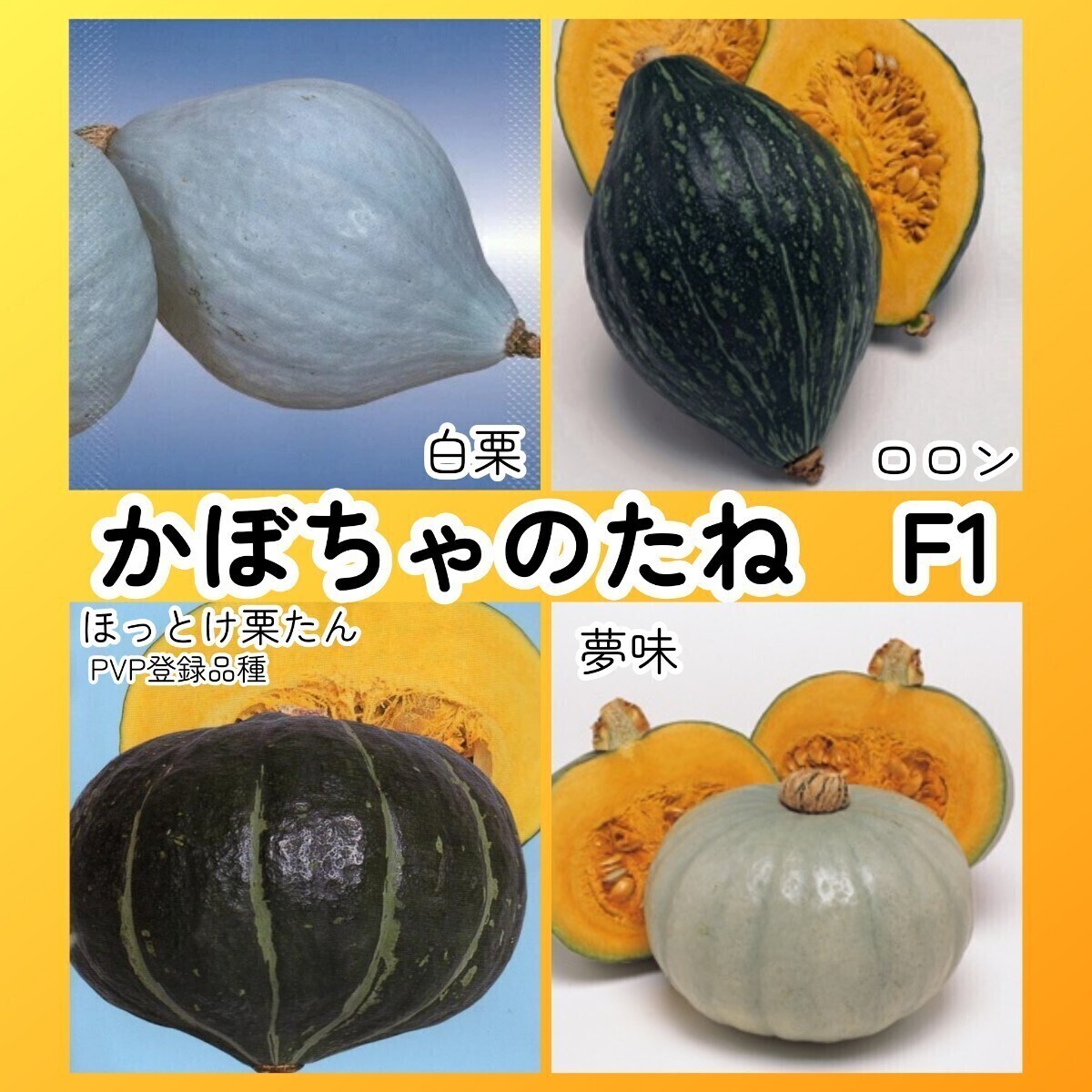 - 匿名配送無料◆F1カボチャ種セット4◆白栗+ロロン+ほっとけ栗たん+夢味◆白皮 ラグビーボール型 短節間南瓜 かぼちゃ