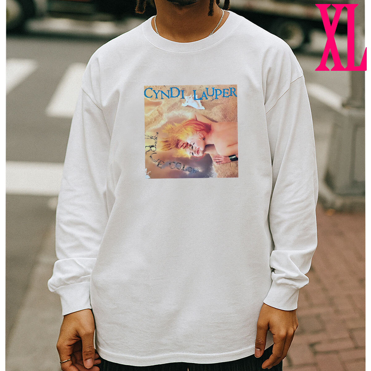 - シンディローパー 柄 フォトプリント リブ付き 長袖 Tシャツ ミュージック ロンT TRUE COLORS 6.0oz コットン100% ユニセックス XL