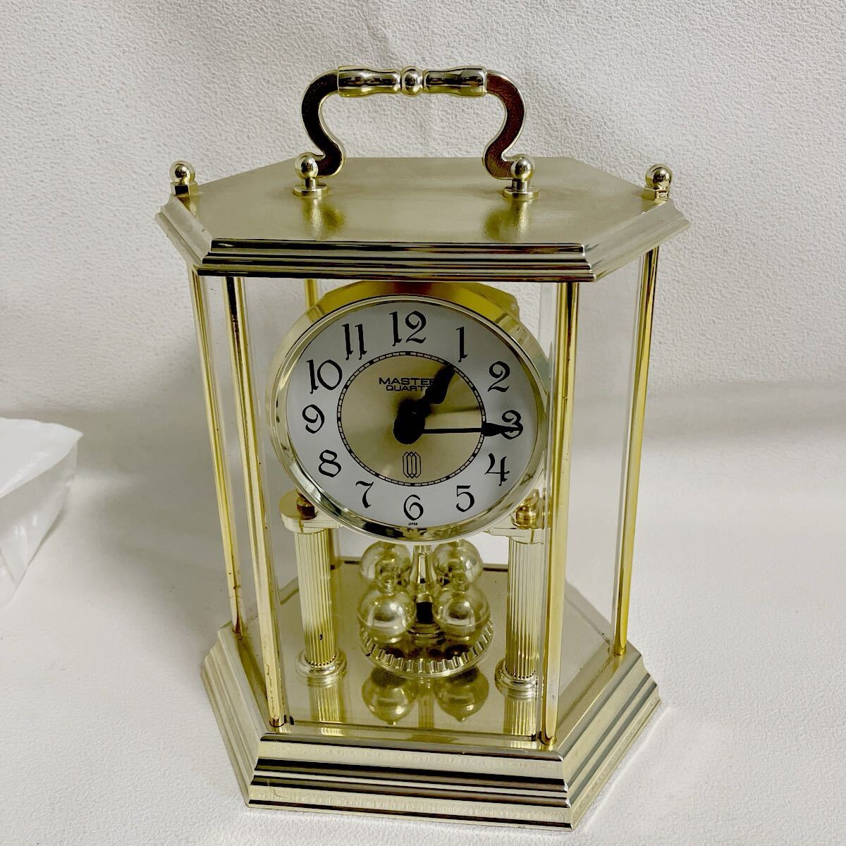 > e284-80 置時計 MASTER 日新時計工業 回転時計 動作未確認 背面部分一面無し レトロ インテリア ゴールド