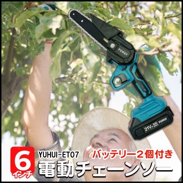 - 【30日間保証付き】電動チェーンソー ミニチェーンソー 6インチ チェンソー 充電式 バッテリー2個付き