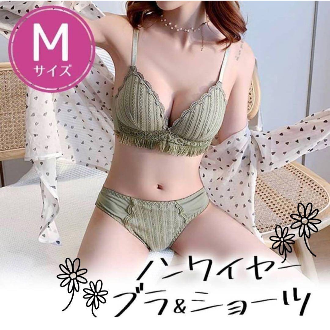 - 新品 レディース ノンワイヤー ブラ M ナイトショーツ セット グリーン 美胸