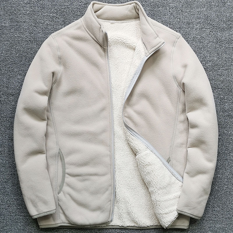 - Y860-2XL ベージュ 新品 フリースジャケット シェニール 裏ボア 暖かい 極暖 防寒 保温 冬 トラックジャケット ブルゾン メンズ アウター
