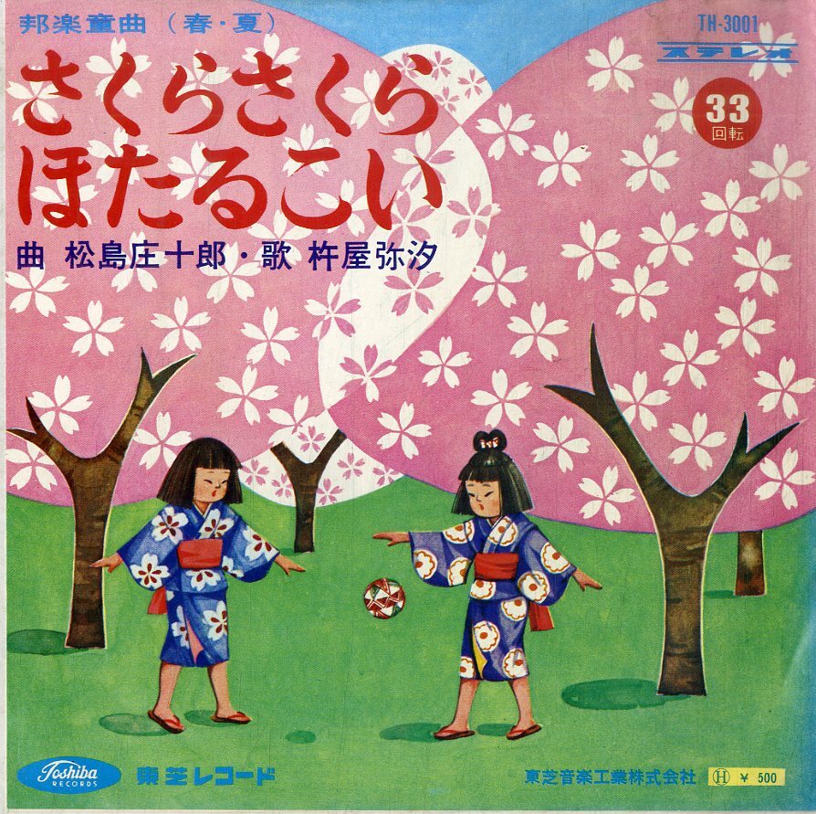 C00172631/EP1枚組-33RPM/松屋庄十郎/杵屋弥汐「邦楽童曲(春・夏):さくらさくら/ほたるこい」