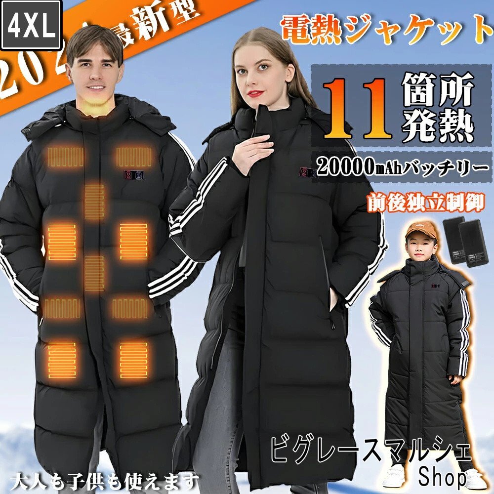 - 電熱ジャケット ベンチコート 11エリア発熱 3段階調温 20000mAh 電熱 メンズ レディース 洗える 電熱ベンチコート スポーツ yhw095.4XL