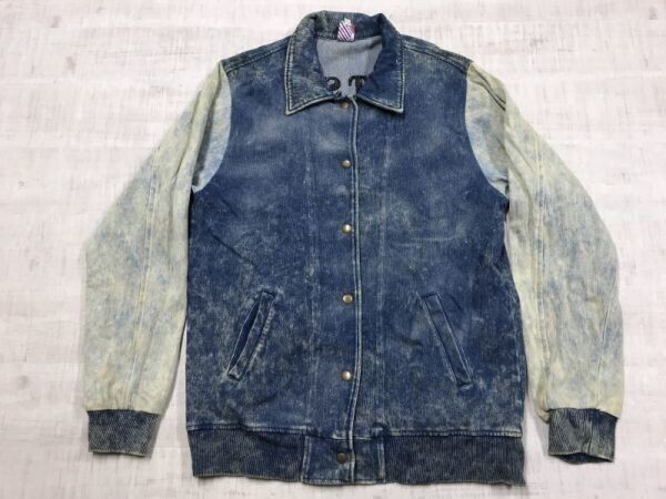 > CO&LU ココルル COANDLU サーフ 平成ギャル古着 フロッキー ケミカルウォッシュ デニム スタジャン バーシティジャケット レディース M 紺