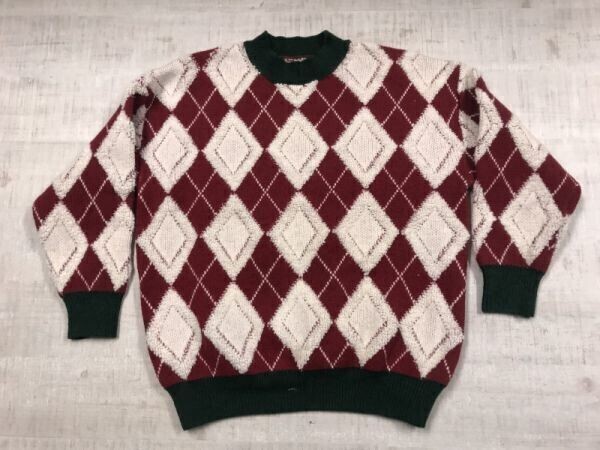 > レトロ モード トラッド 韓国ファッション アーガイル パイル切替 ワイド シルエット ニット セーター レディース 赤