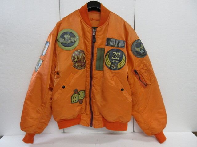 > ファッション祭 AVIREX アヴィレックス フルデコワッペン MA-1 フライトジャケット USA製 サイズL 現状品 オレンジ ミリタリー