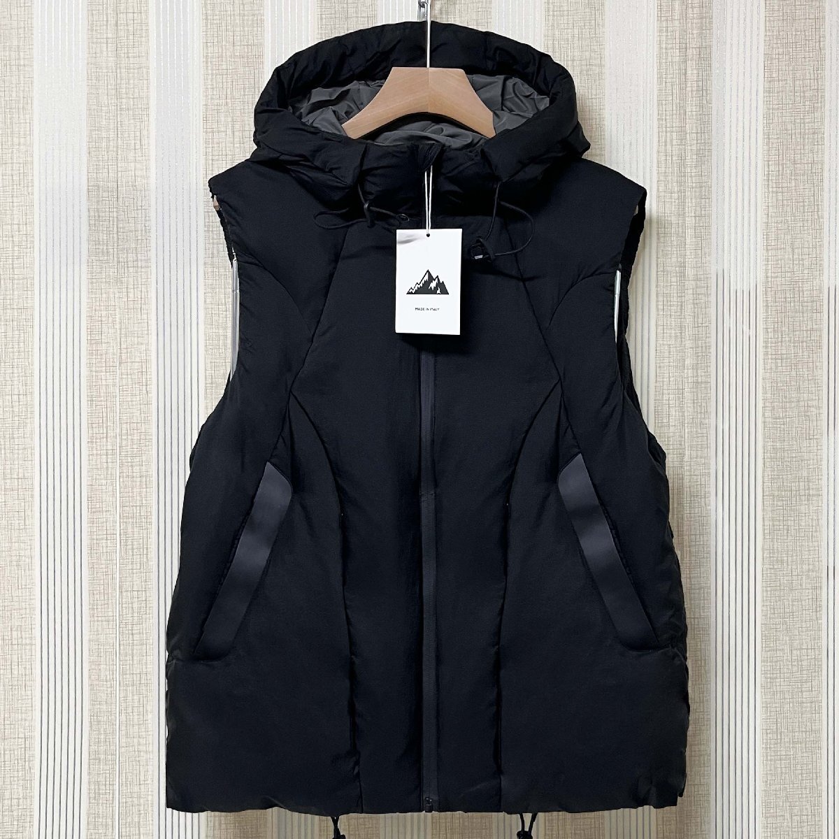 > ダウンベスト イタリア製造 ダックダウン90% 防寒対策 保温 ふわふわ ソフト フード付き 袖なし アウター 通学 カジュアル 冬服 SIZE:L