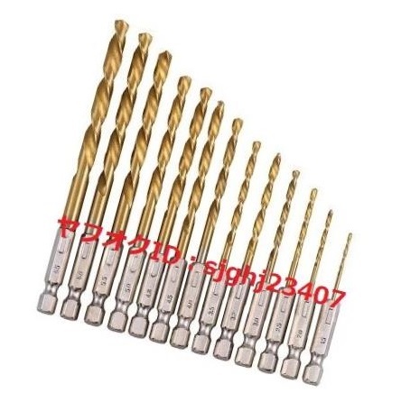■高耐久性HSS鋼のゴールドチタンコート鉄工用ドリル 1 3 個 セット