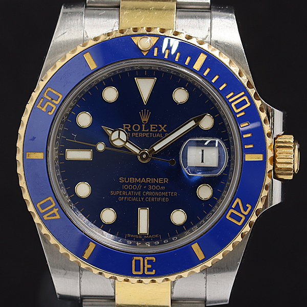> 1円 稼働 ロレックス サブマリーナ デイト コンビ YG×SS 116613 Q6934676 AT/自動巻 ブルー文字盤 メンズ腕時計 0188771 8DIT ABC SMZ