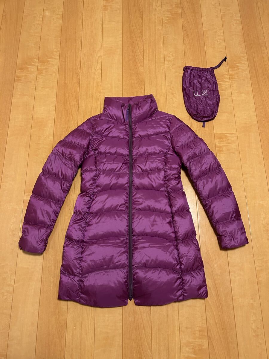 - 美品☆ユニクロ レディースサイズM やや肉厚型.超軽量&高密度ウルトラライトダウンロングコート 収納袋付・手触り良いキルティングナイロン