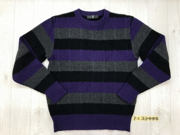 - PLAYBOY プレイボーイ レディース ボーダー ケーブルセーター S 紫黒