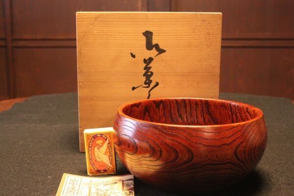 > 【新品未使用】★美品 漆器『山中漆器 くり抜き菓子鉢』桐箱★検:(初だし/木工/伝統工芸/茶器/贈答品/美品/当時物)71009D