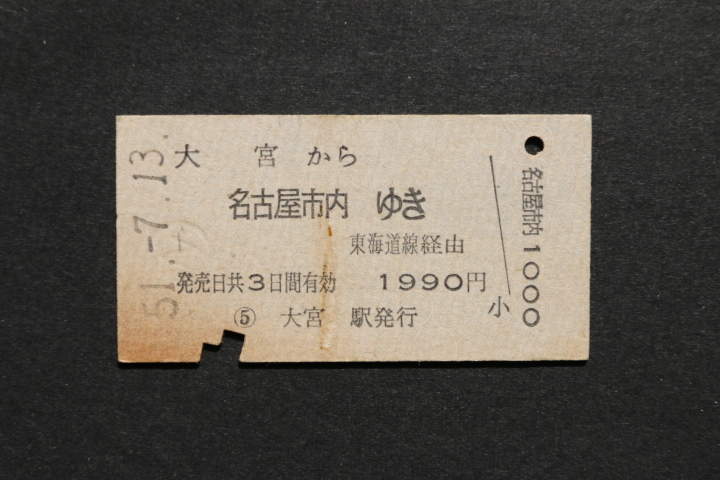 - 乗車券 大宮から 名古屋市内ゆき 1990円