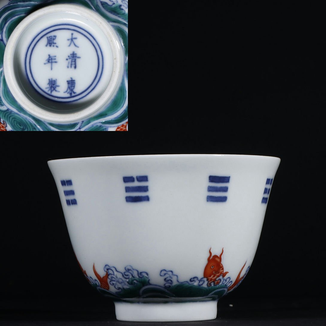 - ▼渡鶴羽▼H7252清代 康熙年製 斗彩杯・時代物・古陶磁・古賞物・旧家買出品