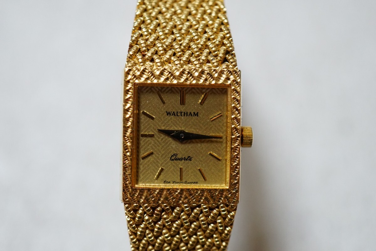 > F2072 WALTHAM/ウォルサム スクエア ゴールドカラー レディース 腕時計 アクセサリー ヴィンテージ ブランド クォーツ 不動品 訳あり 汚れ