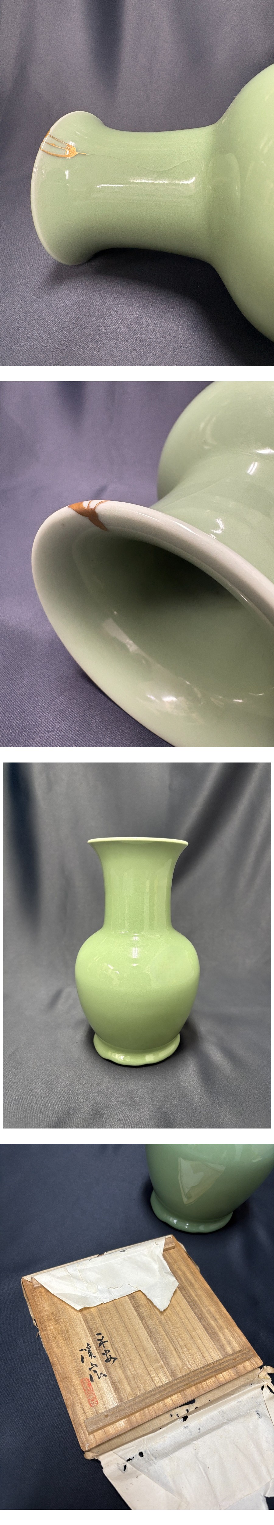 > ◆焼き物【天竜寺青磁花瓶(金継) 渓山 共箱】花瓶,陶磁器,日本美術,青磁,金継,龍泉窯,砧青磁,加藤渓山,骨董品,古玩,古物,煎茶道具,民藝,