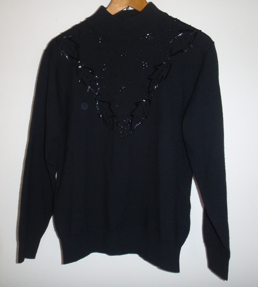 - 手刺繍 黒ニット 市販のセーターに手刺繍 L
