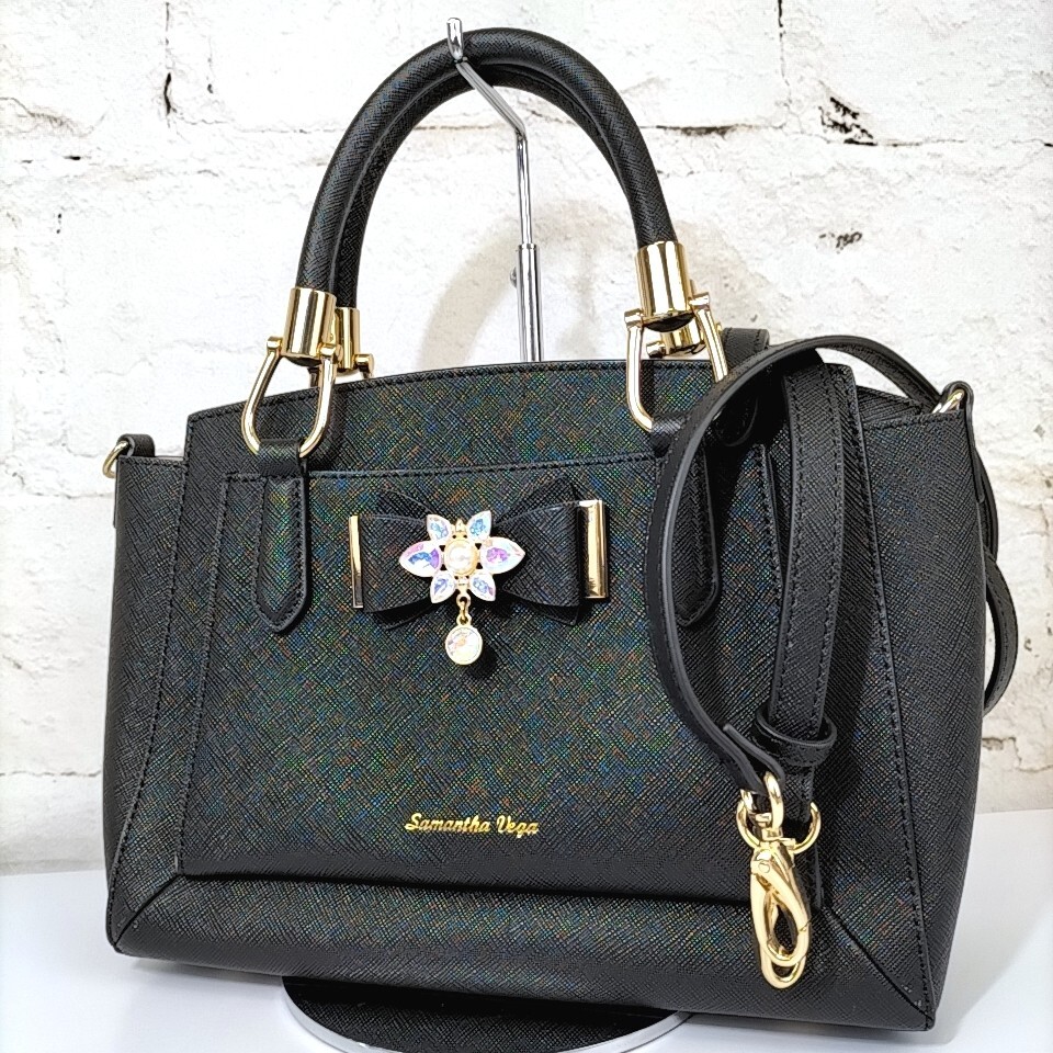 - 【 Samantha Vega 】 サマンサベガ ゴールド金具 レザー 2way ベルト付き ハンドバッグ 手提げ ミニトート レディースバッグ 黒 ブラック B